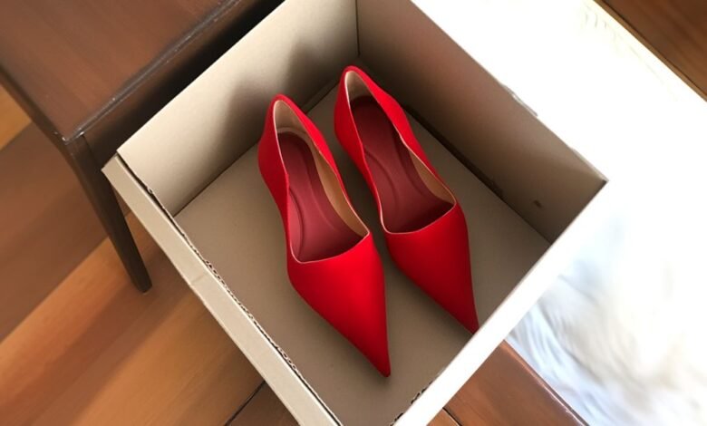 Red heel in a black box | Source: Midjourney